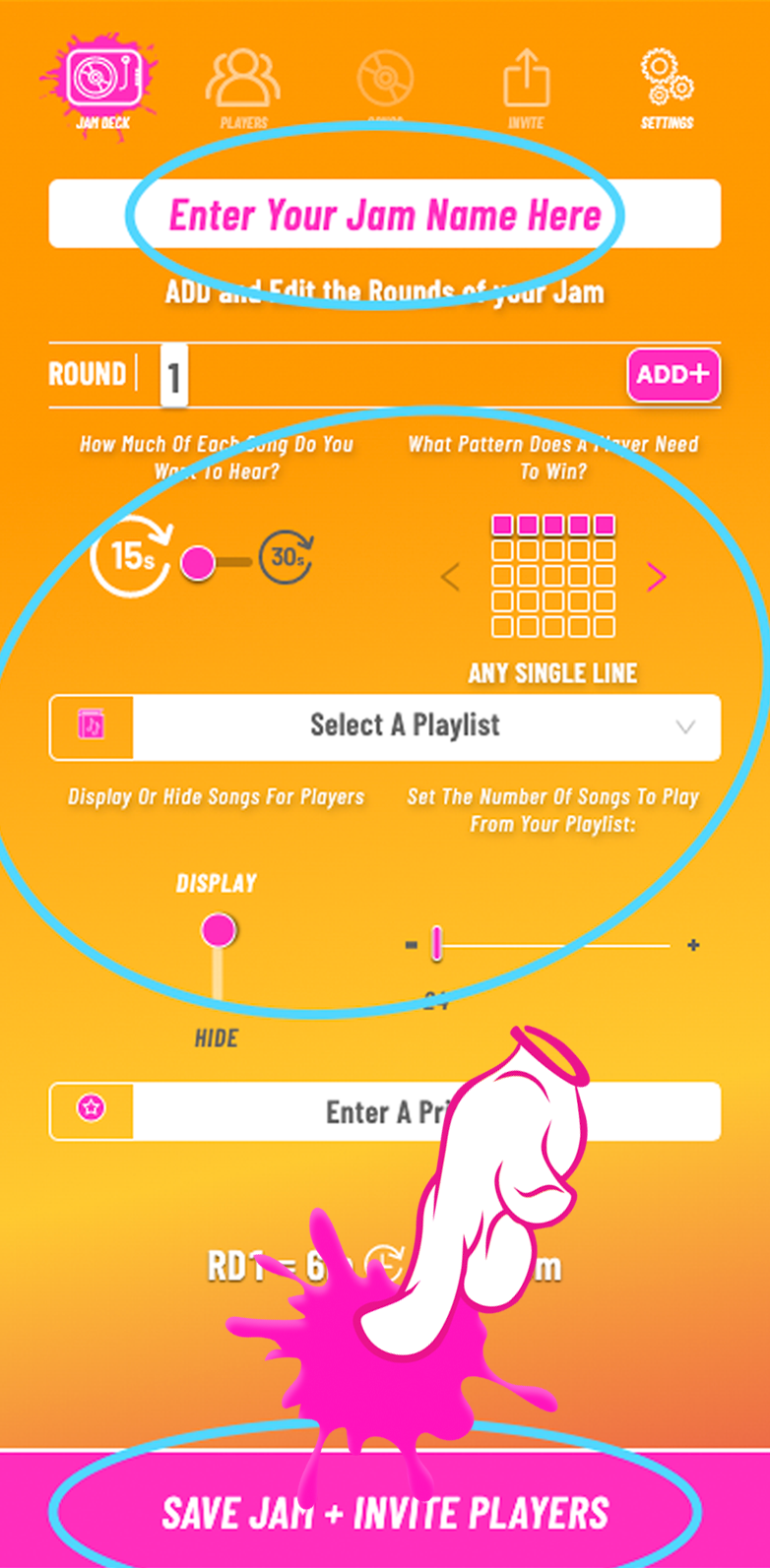 4 - Click SAVE JAM + INVITE PLAYERS at the bottom